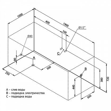 - Размер: 190x100x72 см. Глубина: 50 см. Объем: 450 л.