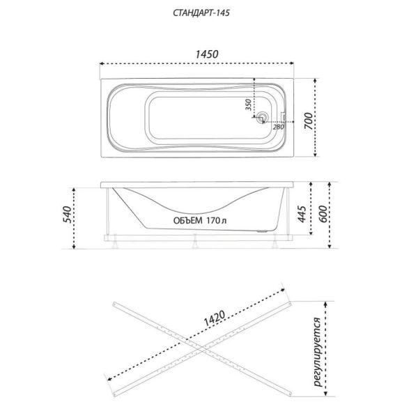 Акриловая ванна Triton Стандарт 145x70 см