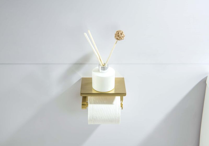 Бумагодержатель с полкой Aquatek Европа AQ4939BG шлифованное золото