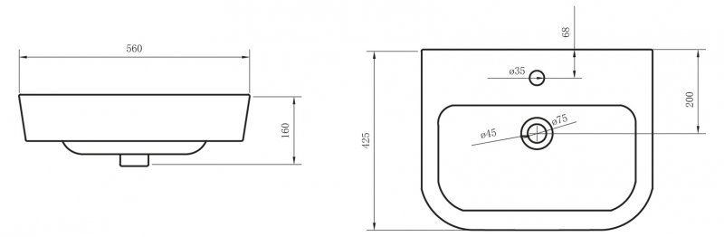 •Габаритные размеры чаши раковины: 56х42,5х16см