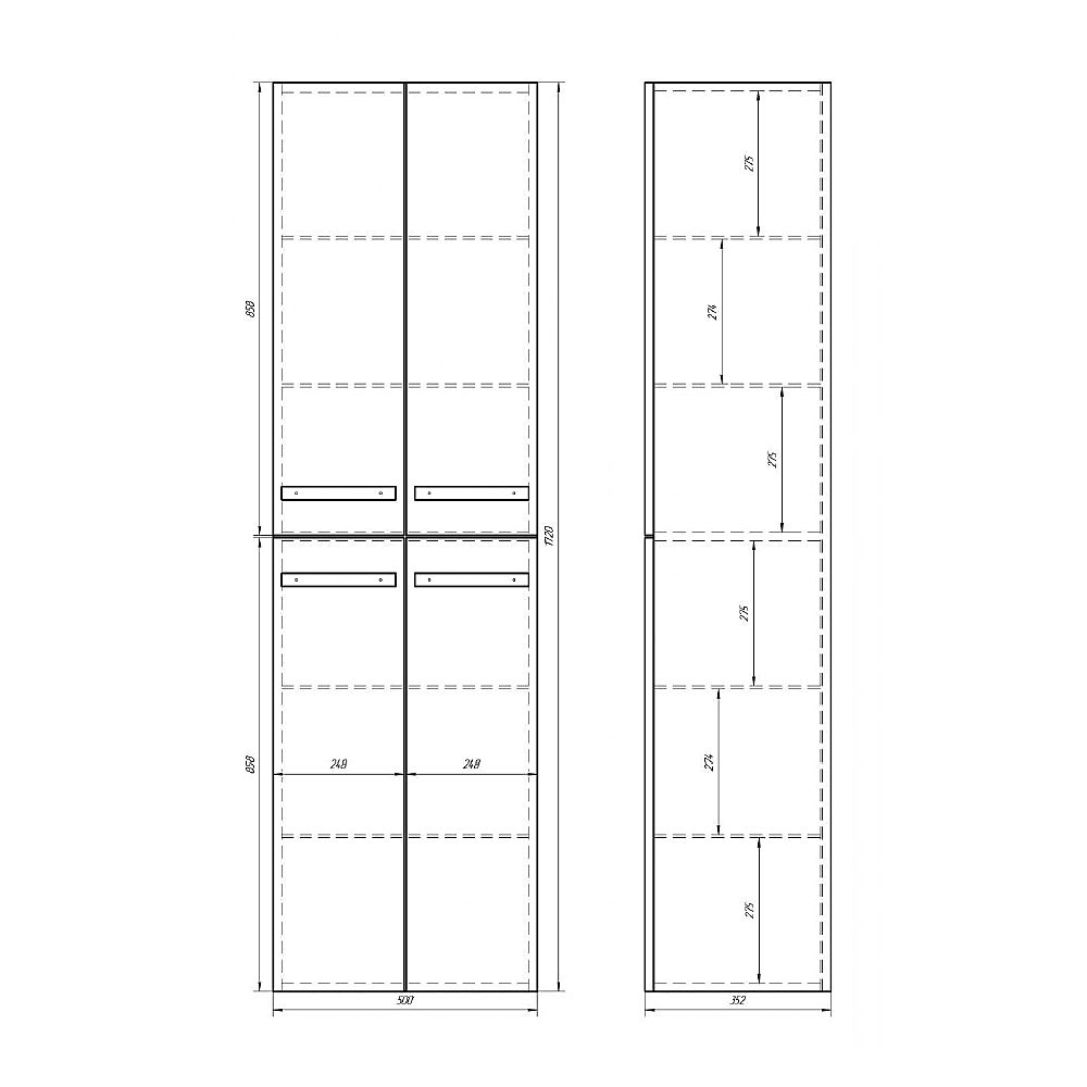 Пенал для коллекций Alfa, Almi. Фасад белый лак МДФ. Стеклянные полки с возможностью перестановки полок по высоте. Подвесной/напольный. В комплект для установки на пол нужно докупить ножки QL. Левый/Правый (перевешиваются дверцы)