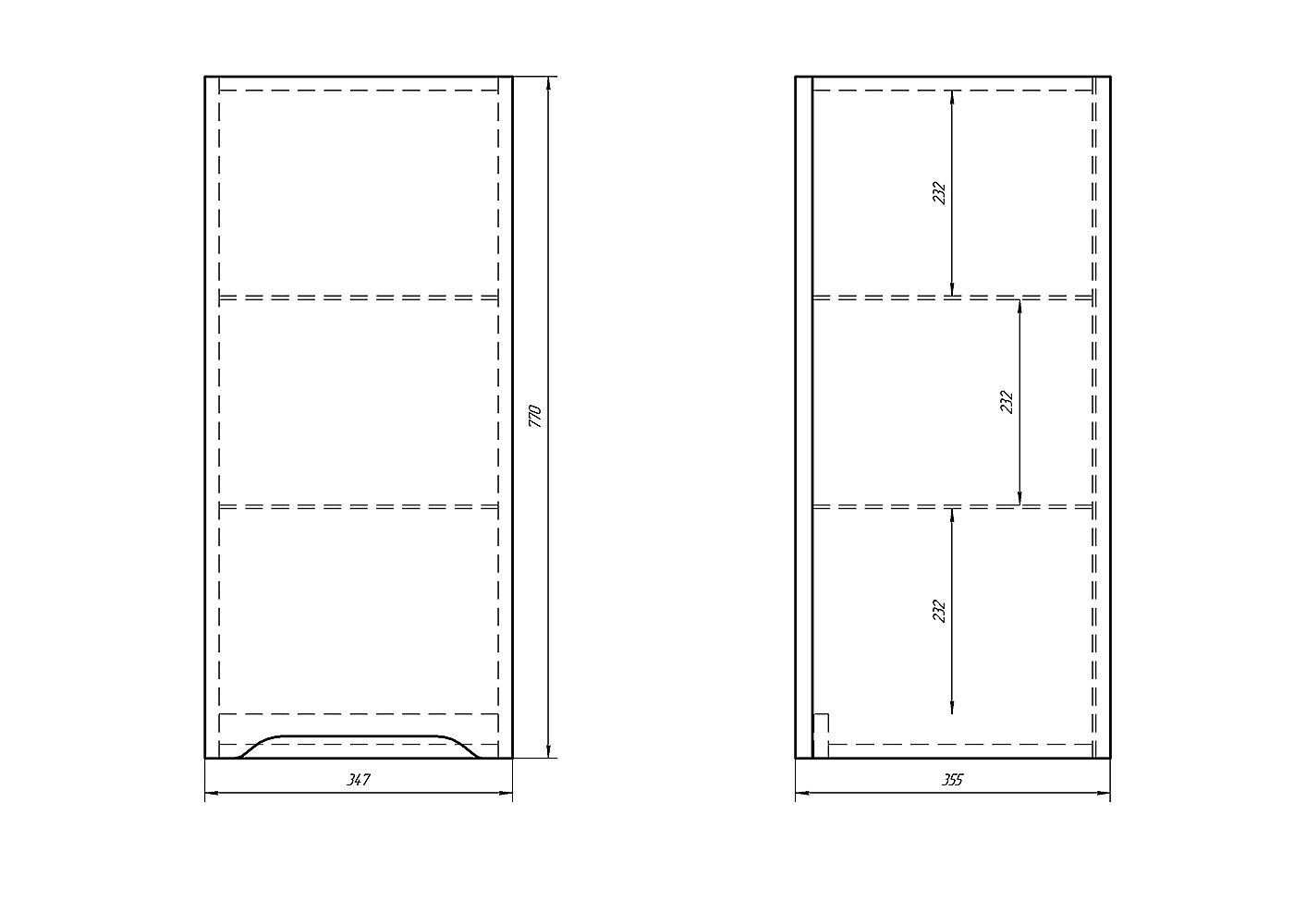 Полупенал для коллекций Q, Laguna, Tiny, Mini. Фасад белый лак МДФ. Стеклянные полки. Подвесной.