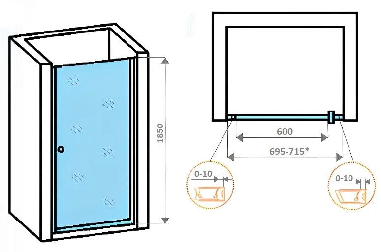 Дверь открывается только в одну сторону.Распашная дверь образует вход комфортной ширины. Модель из прозрачного закаленного стекла (5 мм). Полотно из закаленного стекла устойчиво к случайным ударам. В случае битья, стекло рассыпается на множество мелких граней с тупыми концами.Полированный черный профиль из алюминия не деформируется при высокой влажности и смене температуры.Ширину можно регулировать за счет увеличения алюминиевого профиля в пределах 69,5–71,5 смДостоинства душевой двери: