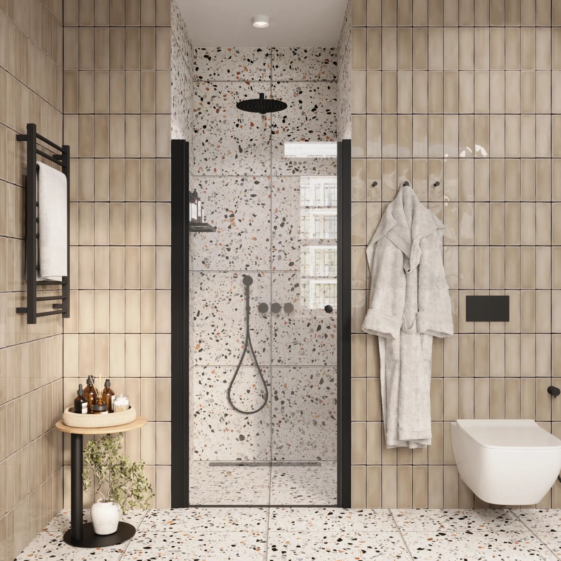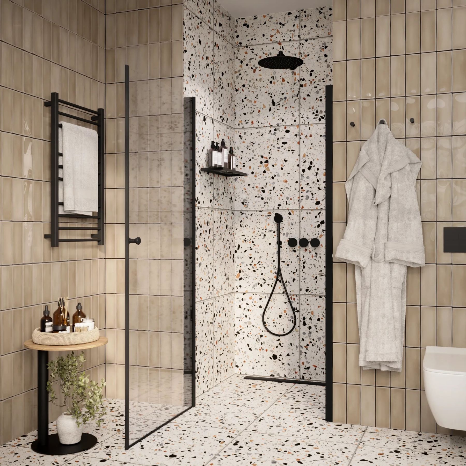 • Душевая дверь помогает зонировать помещение на отдельные функциональные участки.