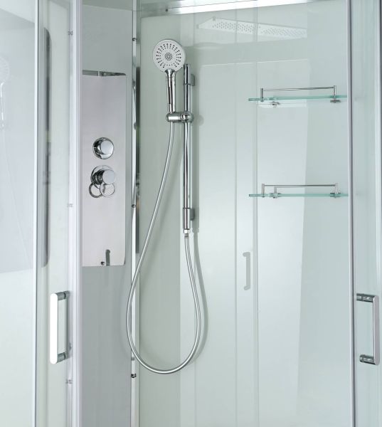 Стильная душевая кабина AvaCan сочетает в себе высокую функциональность, практичность и надежность. При изготовлении применяется безопасное закаленное стекло, надежно фиксируемое алюминиевым профилем. Профиль сделан из алюминия повышенной прочности. Сборка без силикона (увеличивает срок службы, защищает от протечек), внутренняя сборка (облегчает установку и ревизию; позволяет установить в ограниченном пространстве и обойтись без демонтажа других сантехнических приборов), смеситель резьбовой (без хомутов). Съемный экран поддона (позволяет осуществлять подключение и ревизию сифона).Двойные металлические ролики дверей (распределение нагрузки на два ролика, увеличивают срок службы). Душевая штанга(позволяет регулировать по высоте ручную лейку), ручная арома-лейка с витамином С (картридж в комплекте,есть возможность замены или удаления картриджа), полочки(из стекла, с ограничителем), сифон с гидрозатвором.