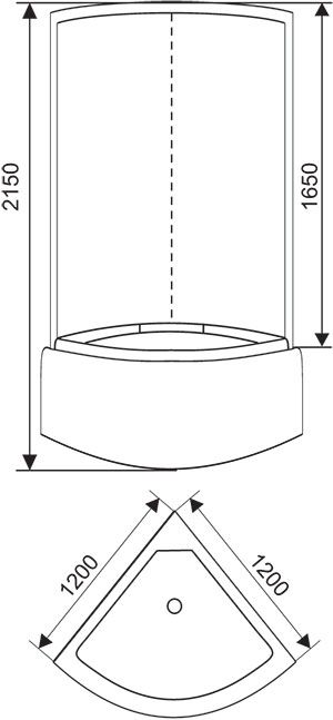 поддон высокий 50см фронтальные стекла матовые фактурные задние стекла матовые «серебро» центральная панель стекло матовое «серебро» хромированный алюминиевый профиль регулируемые ролики хромированные ручки для дверей 4-х режимный смеситель ручная лейка на штанге 6 гидромассажных форсунок верхняя лейка «тропический душ» стеклянная полка пульт управления с функциями: радио, свет, вентилятор излив для набора воды в поддон