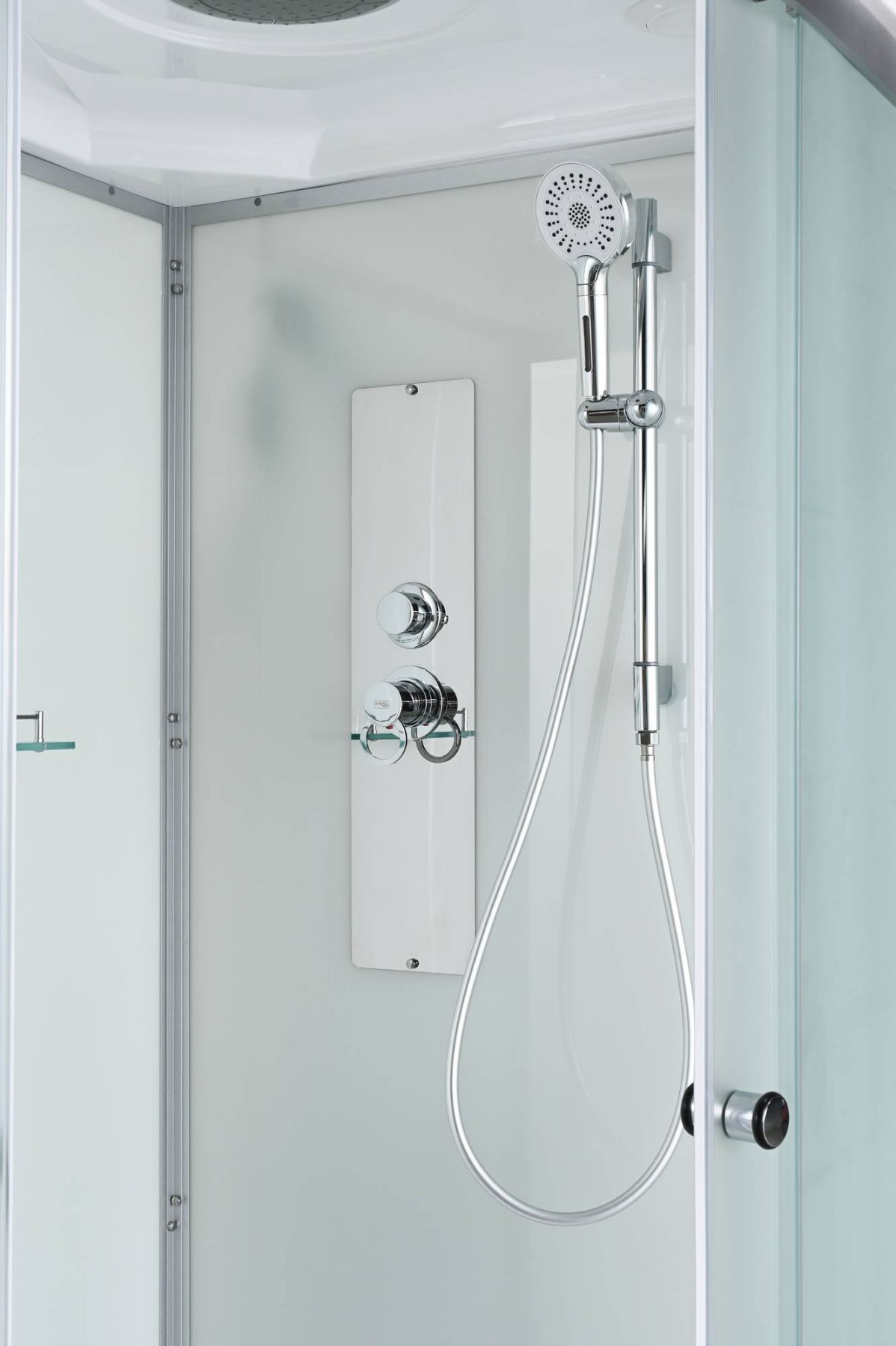 Стильная душевая кабина AvaCan D 2090 сочетает в себе высокую функциональность, практичность и надежность. При изготовлении применяется безопасное закаленное стекло толщиной 4 мм (матовое), надежно фиксируемое алюминиевым профилем. Сборка без силикона (увеличивает срок службы), внутренняя сборка (облегчает установку и ревизию, позволяет установить душевую кабину в ограниченном пространстве),смеситель резьбовой (без хомутов), съемный экран поддона (позволяет осуществлять ревизию сифона), цвет профиля матовый хром. Двойные металлические ролики дверей (увеличивают срок службы).В комплекте : душевая штанга, полочка, тропический (верхний) душ, арома-лейка с витамином С (картридж съемный).