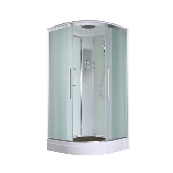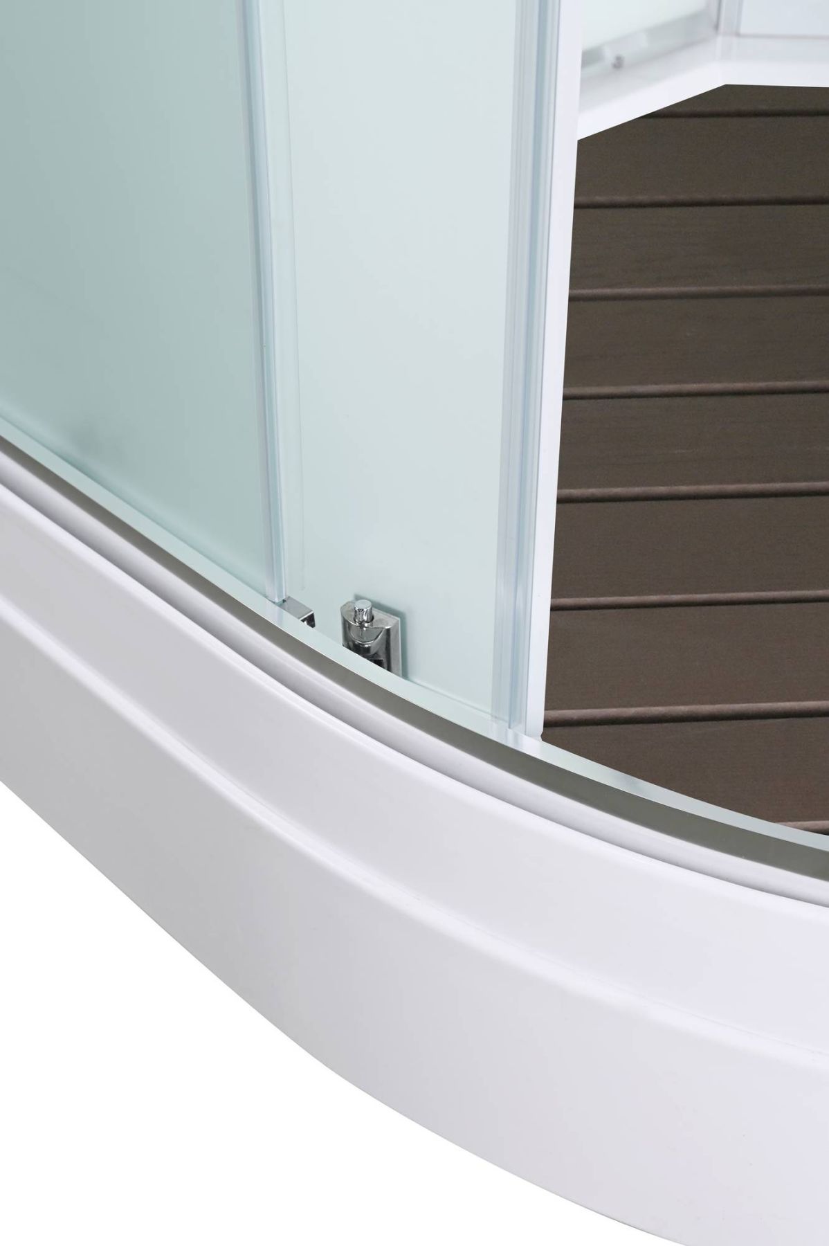 Стильная душевая кабина AvaCan EM2010 сочетает в себе высокую функциональность, практичность и надежность. При изготовлении применяется безопасное закаленное стекло толщиной 5 мм (матовое), надежно фиксируемое алюминиевым профилем. Сборка без силикона (увеличивает срок службы), внутренняя сборка(облегчает установку и ревизию; позволяет установить в ограниченном пространстве), смеситель резьбовой (без хомутов). Съемный экран поддона (позволяет осуществлять ревизию сифона). Цвет профиля хром. Двойные металлические ролики дверей (увеличивают срок службы).В комплекте : душевая штанга, две полочки , тропический (верхний) душ, арома-лейка с витамином С (картридж съемный),полимерная вставка в поддон(имитация дерева),сифон, ручки дверей из нержавейки , двойные ролики .