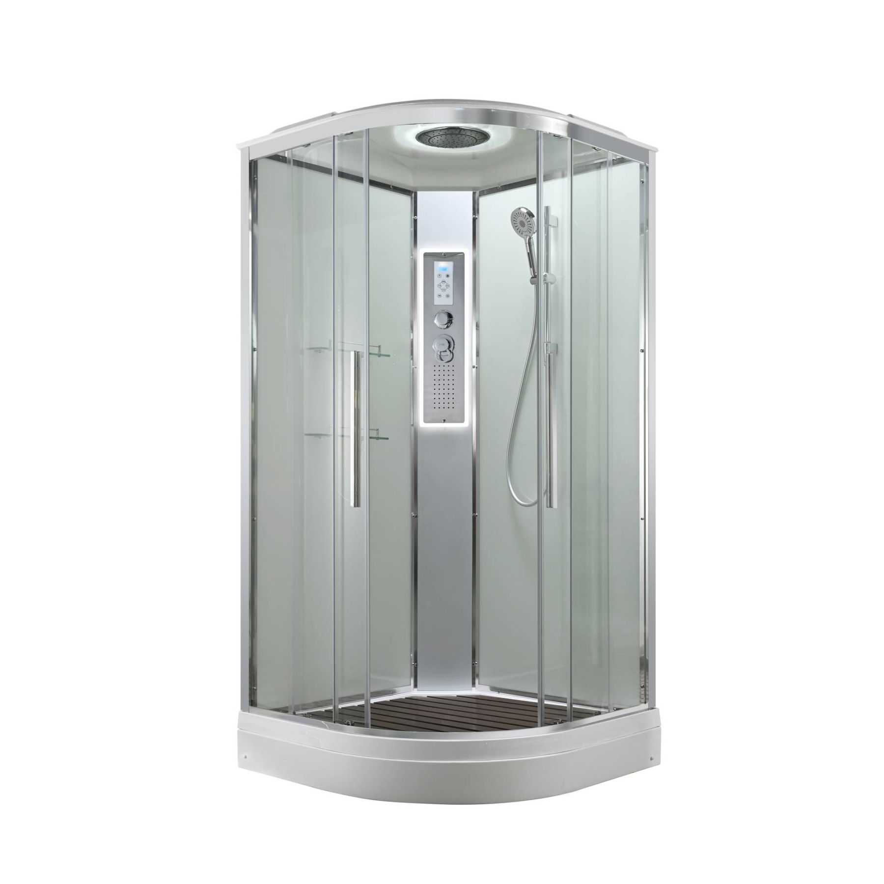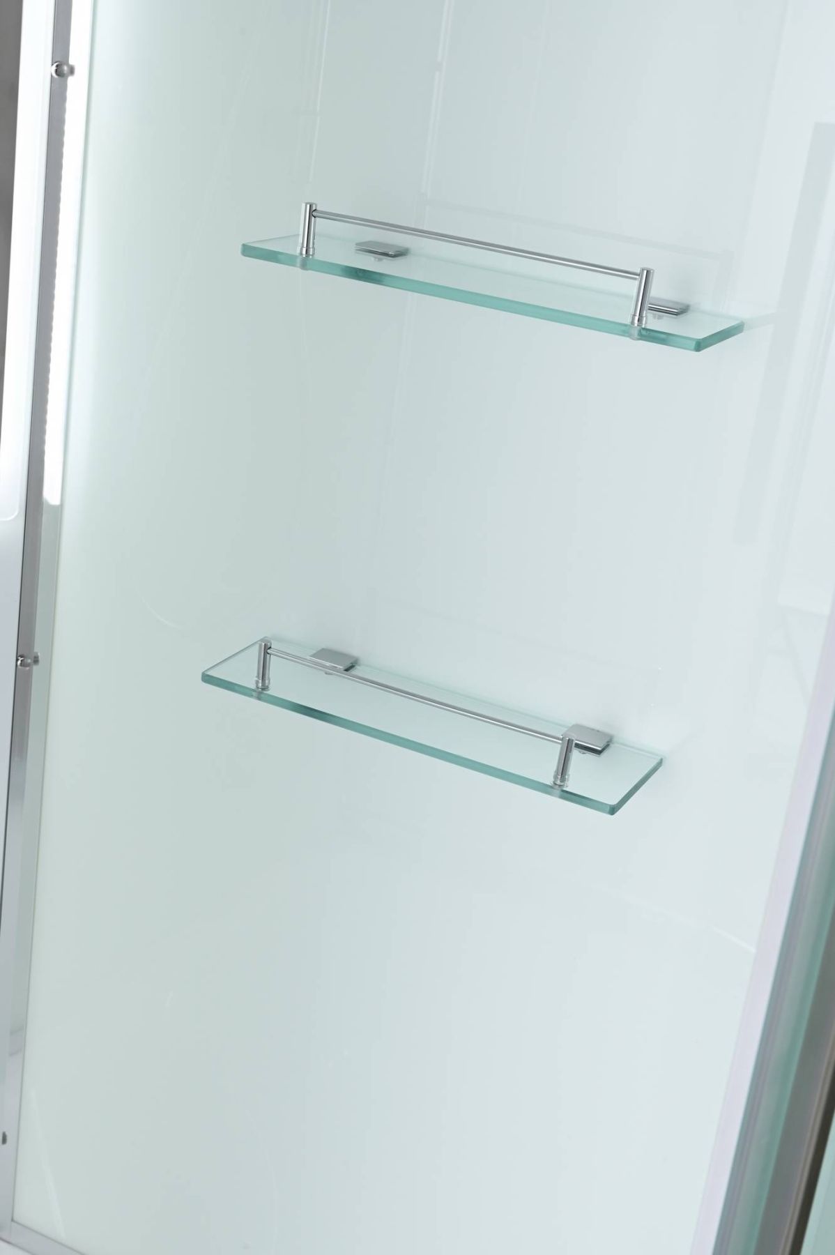 Стильная душевая кабина AvaCan EM2011LEDT сочетает в себе высокую функциональность, практичность и надежность. При изготовлении применяется безопасное закаленное стекло толщиной 5 мм (прозрачное), надежно фиксируемое алюминиевым профилем. Сборка без силикона (увеличивает срок службы), внутренняя сборка(облегчает установку и ревизию; позволяет установить в ограниченном пространстве), смеситель резьбовой (без хомутов). Съемный экран поддона (позволяет осуществлять ревизию сифона). Цвет профиля  хром. Двойные металлические ролики дверей (увеличивают срок службы).В комплекте : душевая штанга, две полочки , тропический (верхний) душ, арома-лейка с витамином С (картридж съемный),полимерная вставка в поддон(имитация дерева),сифон, ручки дверей из нержавейки , двойные ролики ,пульт сенсорный(Блютуз ,LED подсветка ,радио ,вытяжка),гидромассаж спины.