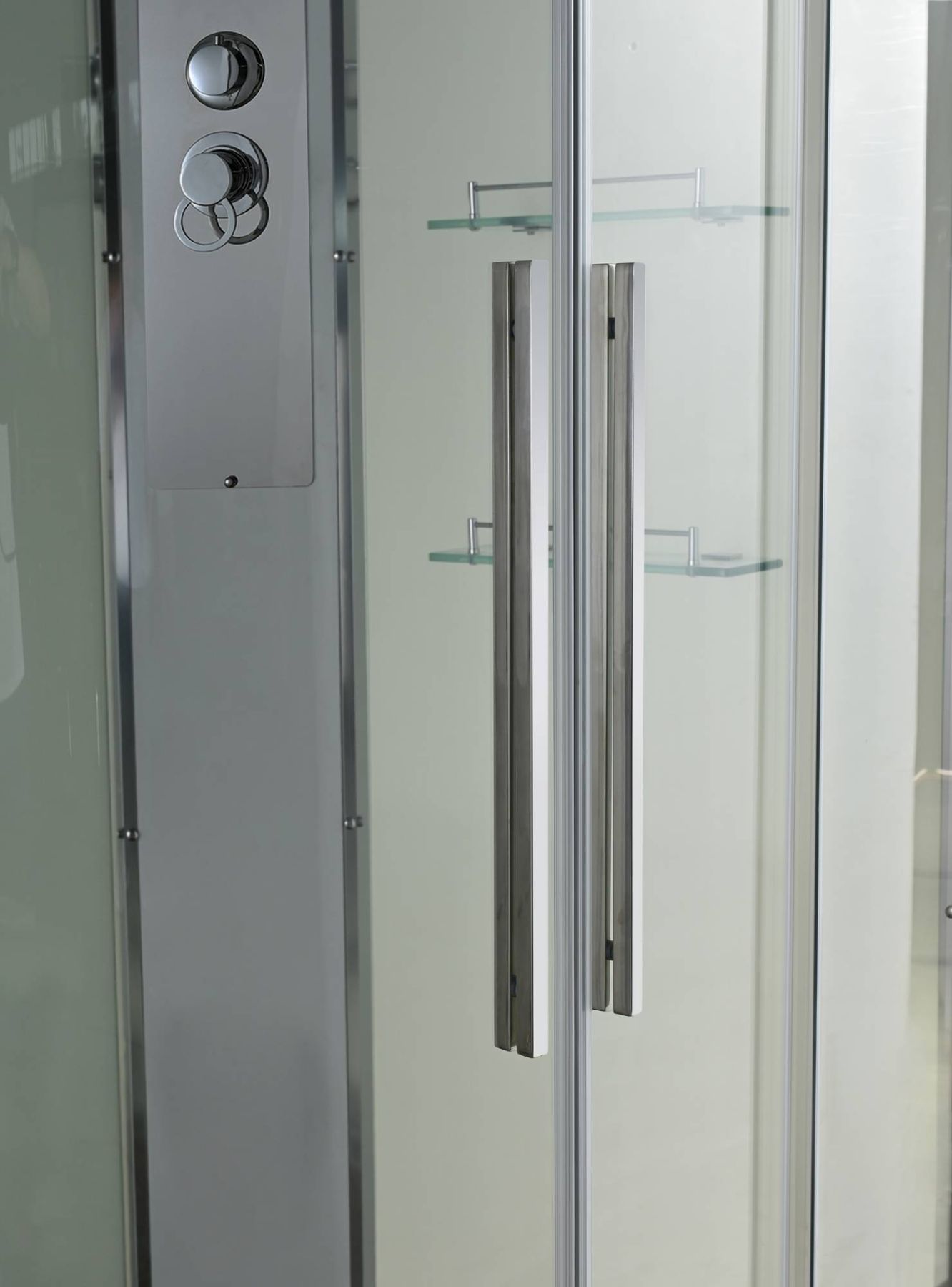 Стильная душевая кабина AvaCan EM2811RNT сочетает в себе высокую функциональность, практичность и надежность. При изготовлении применяется безопасное закаленное стекло толщиной 5 мм (прозрачное), надежно фиксируемое алюминиевым профилем. Сборка без силикона (увеличивает срок службы), внутренняя сборка(облегчает установку и ревизию; позволяет установить в ограниченном пространстве), смеситель резьбовой (без хомутов). Съемный экран поддона (позволяет осуществлять ревизию сифона). Цвет профиля хром. Двойные металлические ролики дверей (увеличивают срок службы).В комплекте : душевая штанга, две полочки , арома-лейка с витамином С (картридж съемный),полимерная вставка в поддон(имитация дерева),сифон, ручки дверей из нержавейки , двойные ролики .