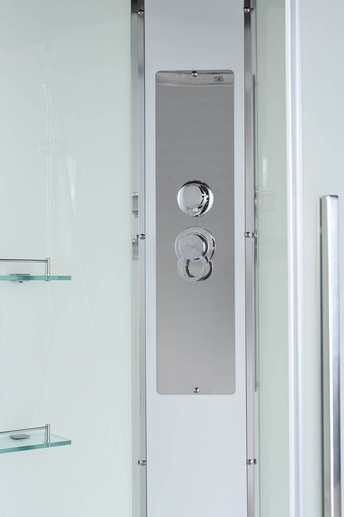 Стильная душевая кабина AvaCan сочетает в себе высокую функциональность, практичность и надежность. При изготовлении применяется безопасное закаленное стекло, надежно фиксируемое алюминиевым профилем. Профиль сделан из алюминия повышенной прочности. Сборка без силикона (увеличивает срок службы, защищает от протечек), внутренняя сборка (облегчает установку и ревизию; позволяет установить в ограниченном пространстве и обойтись без демонтажа других сантехнических приборов), смеситель резьбовой (без хомутов). Съемный экран поддона (позволяет осуществлять подключение и ревизию сифона).Двойные металлические ролики дверей (распределение нагрузки на два ролика, увеличивают срок службы). Душевая штанга(позволяет регулировать по высоте ручную лейку), ручная арома-лейка с витамином С (картридж в комплекте,есть возможность замены или удаления картриджа), полочки(из стекла, с ограничителем), сифон с гидрозатвором.