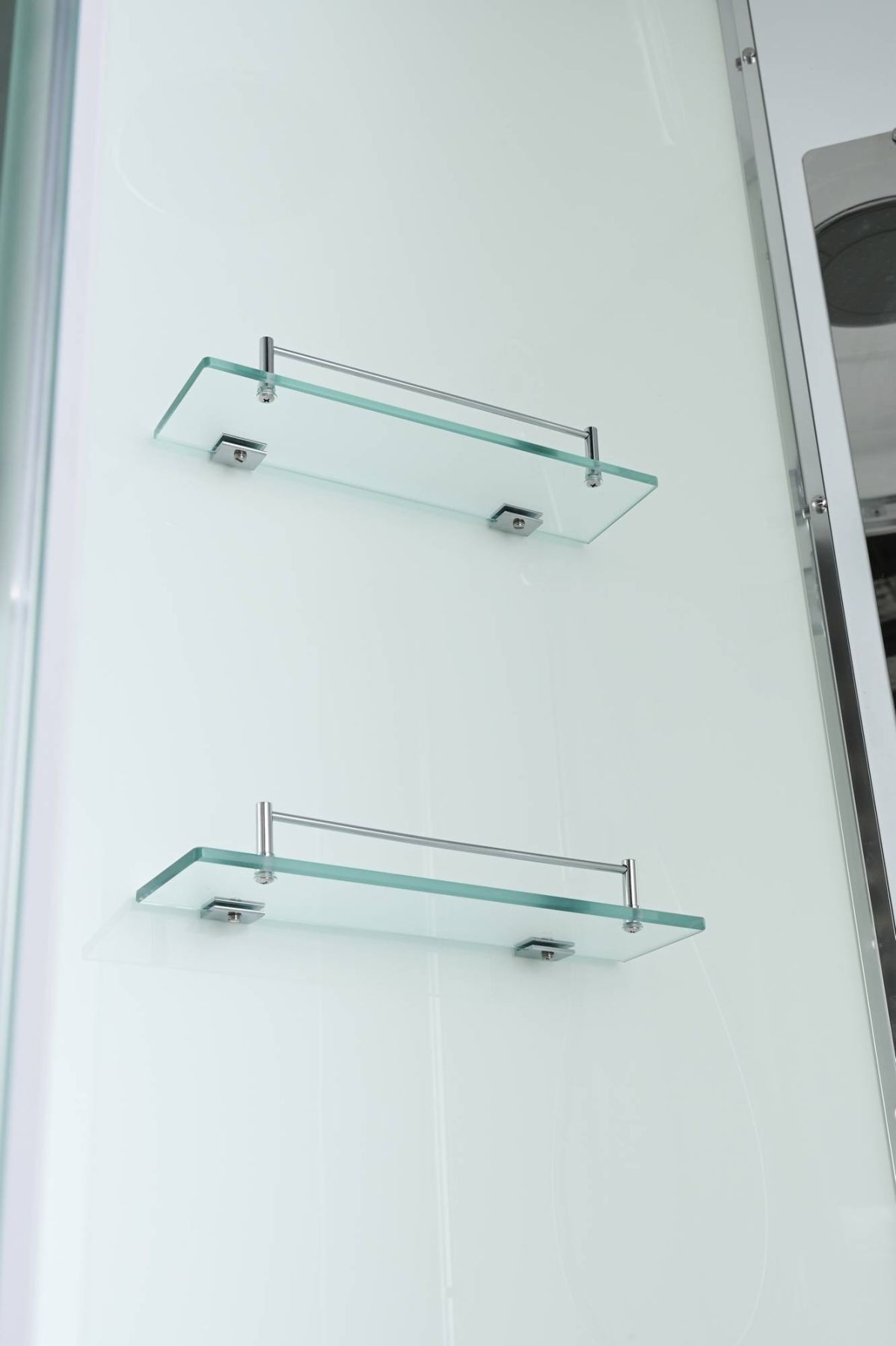 Стильная душевая кабина AvaCan сочетает в себе высокую функциональность, практичность и надежность. При изготовлении применяется безопасное закаленное стекло, надежно фиксируемое алюминиевым профилем. Профиль сделан из алюминия повышенной прочности. Сборка без силикона (увеличивает срок службы, защищает от протечек), внутренняя сборка (облегчает установку и ревизию; позволяет установить в ограниченном пространстве и обойтись без демонтажа других сантехнических приборов), смеситель резьбовой (без хомутов). Съемный экран поддона (позволяет осуществлять подключение и ревизию сифона).Двойные металлические ролики дверей (распределение нагрузки на два ролика, увеличивают срок службы). Душевая штанга(позволяет регулировать по высоте ручную лейку), ручная арома-лейка с витамином С (картридж в комплекте,есть возможность замены или удаления картриджа), полочки(из стекла, с ограничителем), сифон с гидрозатвором.