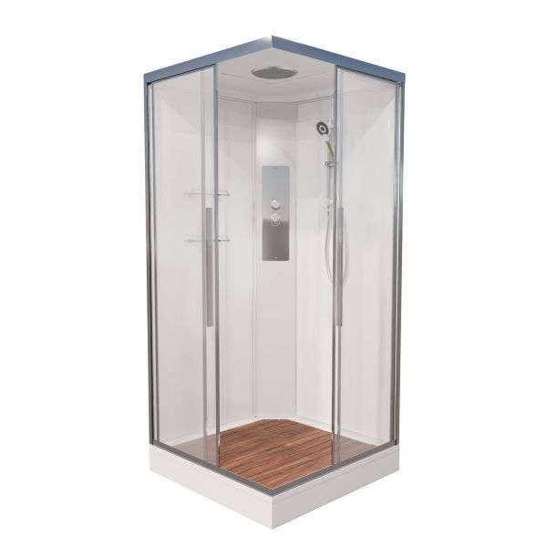 Стильная душевая кабина AvaCan сочетает в себе высокую функциональность, практичность и надежность. При изготовлении применяется безопасное закаленное стекло, надежно фиксируемое алюминиевым профилем. Профиль сделан из алюминия повышенной прочности. Сборка без силикона (увеличивает срок службы, защищает от протечек), внутренняя сборка (облегчает установку и ревизию; позволяет установить в ограниченном пространстве и обойтись без демонтажа других сантехнических приборов), смеситель резьбовой (без хомутов). Съемный экран поддона (позволяет осуществлять подключение и ревизию сифона).Двойные металлические ролики дверей (распределение нагрузки на два ролика, увеличивают срок службы). Душевая штанга(позволяет регулировать по высоте ручную лейку), ручная арома-лейка с витамином С (картридж в комплекте,есть возможность замены или удаления картриджа), полочки(из стекла, с ограничителем), сифон с гидрозатвором.