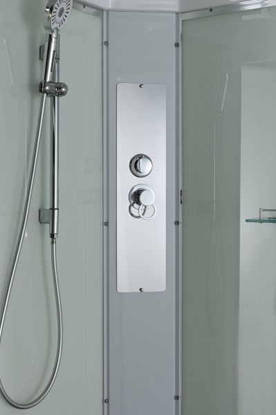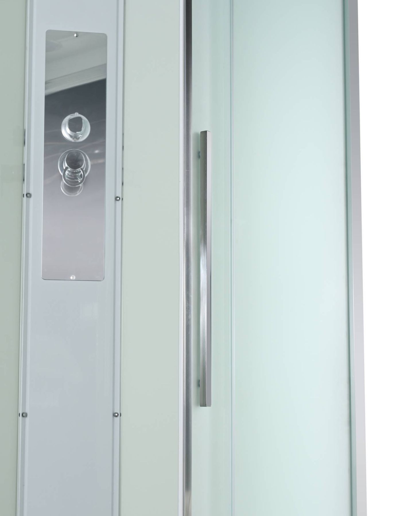 Стильная душевая кабина AvaCan сочетает в себе высокую функциональность, практичность и надежность. При изготовлении применяется безопасное закаленное стекло, надежно фиксируемое алюминиевым профилем. Профиль сделан из алюминия повышенной прочности. Сборка без силикона (увеличивает срок службы, защищает от протечек), внутренняя сборка (облегчает установку и ревизию; позволяет установить в ограниченном пространстве и обойтись без демонтажа других сантехнических приборов), смеситель резьбовой (без хомутов). Съемный экран поддона (позволяет осуществлять подключение и ревизию сифона).Двойные металлические ролики дверей (распределение нагрузки на два ролика, увеличивают срок службы). Душевая штанга(позволяет регулировать по высоте ручную лейку), ручная арома-лейка с витамином С (картридж в комплекте,есть возможность замены или удаления картриджа), полочки(из стекла, с ограничителем), сифон с гидрозатвором.