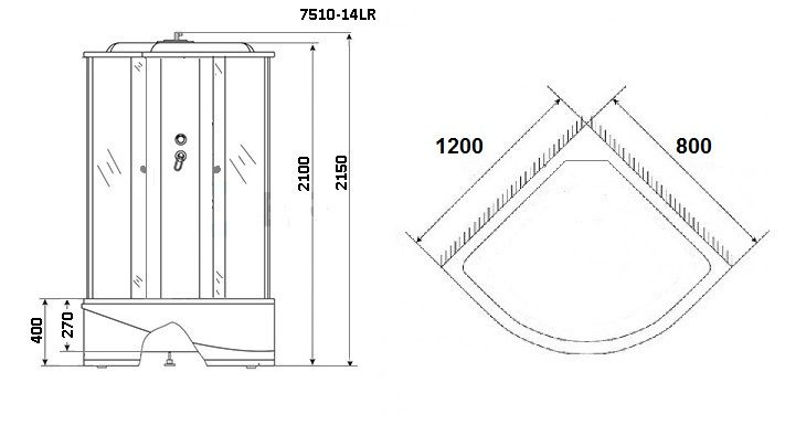 Душевая кабина Niagara NG-7510-14R BLACK 120х80х215