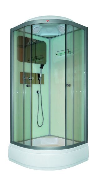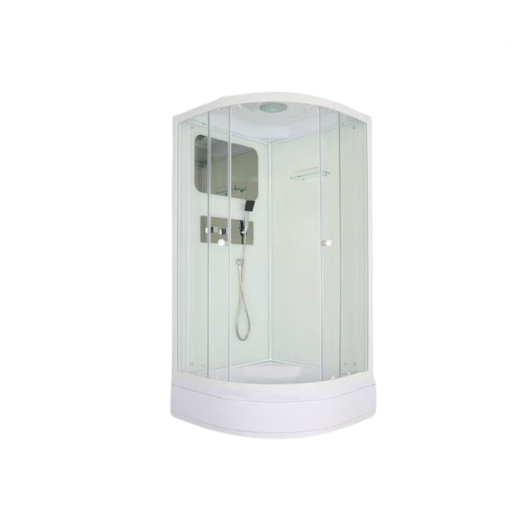 БЕЗСИЛИКОНОВАЯ СБОРКАДушевая кабина Parly BMM86Размер: 85х85х215 смКомпактная светлая кабина экономит место в ванной и визуально увеличивает пространство. Отсутствие центрального столба позволило увеличить внутреннюю площадь душевой зоны.Достоинства:Прозрачное закаленное стекло, 4 мм. Полотно устойчиво к случайным ударам. В случае битья рассыпается на мелкие грани с тупыми концами.Стенки из закаленного белого стекла, 4 мм.Профиль: белый, алюминиевый. Не подвержен коррозии.Поддон: средний 26 см, полукруглый. Высота поддона предупреждает разбрызгивание воды и позволяет замачивать вещи.Сборка без применения силикона. Конструкция душевой кабины обеспечивает слив воды внутрь поддона. Сам поддон по всему периметру оснащен водонепроницаемым бортиком высотой 2 см, который исключает перелив воды за пределы душевой зоны.Комплектация: полка, большое встроенное зеркало, верхний душ ТРОПИК, ручной душ, сифон Внимание! Производитель оставляет за собой право вносить изменения в конструкцию и комплектацию моделей без предварительного уведомления!