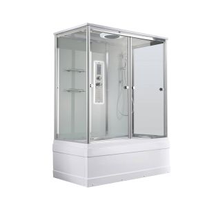 Стильная душевая кабина AvaCan сочетает в себе высокую функциональность, практичность и надежность. При изготовлении применяется безопасное закаленное стекло, надежно фиксируемое алюминиевым профилем.Профиль сделан из алюминия повышенной прочности. Сборка без силикона (увеличивает срок службы, защищает от протечек), внутренняя сборка (облегчает установку и ревизию; позволяет установить в ограниченном пространстве и обойтись без демонтажа других сантехнических приборов), смеситель резьбовой (без хомутов). Съемный экран поддона (позволяет осуществлять подключение и ревизию сифона).Двойные металлические ролики дверей (распределение нагрузки на два ролика, увеличивают срок службы). Душевая штанга(позволяет регулировать по высоте ручную лейку), ручная арома-лейка с витамином С (картридж в комплекте,есть возможность замены или удаления картриджа), полочки(из стекла, с ограничителем), сифон с гидрозатвором, сенсорный пульт управления с функциями: блютуз, LED подсветка, радио, вытяжка, гидромассаж спины, тропический (верхний) душ.