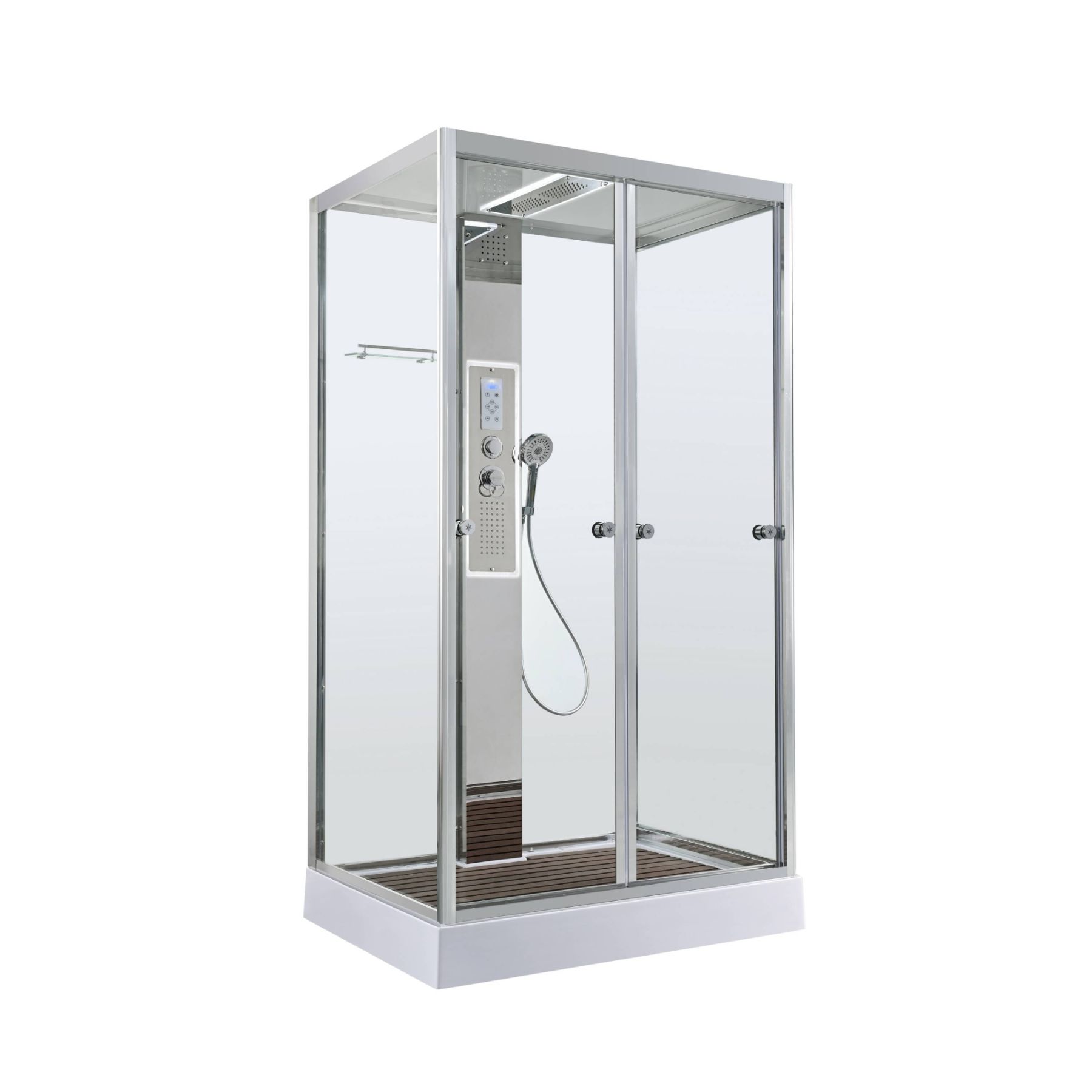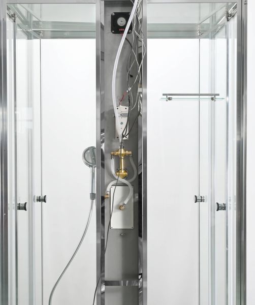 Стильная душевая кабина AvaCan сочетает в себе высокую функциональность, практичность и надежность. При изготовлении применяется безопасное закаленное стекло, надежно фиксируемое алюминиевым профилем.Профиль сделан из алюминия повышенной прочности. Сборка без силикона (увеличивает срок службы, защищает от протечек), внутренняя сборка (облегчает установку и ревизию; позволяет установить в ограниченном пространстве и обойтись без демонтажа других сантехнических приборов), смеситель резьбовой (без хомутов).Двойные металлические ролики дверей (распределение нагрузки на два ролика, увеличивают срок службы). Душевая штанга(позволяет регулировать по высоте ручную лейку), ручная арома-лейка с витамином С (картридж в комплекте,есть возможность замены или удаления картриджа), полочки(из стекла, с ограничителем), сифон с гидрозатвором, сенсорный пульт управления с функциями: блютуз, LED подсветка, радио, вытяжка, гидромассаж спины, тропический (верхний) душ.