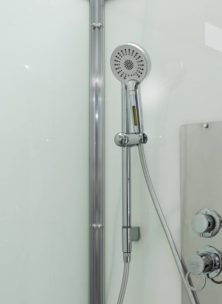 Стильная душевая кабина AvaCan сочетает в себе высокую функциональность, практичность и надежность. При изготовлении применяется безопасное закаленное стекло, надежно фиксируемое алюминиевым профилем. Профиль сделан из алюминия повышенной прочности. Сборка без силикона (увеличивает срок службы, защищает от протечек), внутренняя сборка (облегчает установку и ревизию; позволяет установить в ограниченном пространстве и обойтись без демонтажа других сантехнических приборов), смеситель резьбовой (без хомутов).Двойные металлические ролики дверей (распределение нагрузки на два ролика, увеличивают срок службы). Душевая штанга(позволяет регулировать по высоте ручную лейку), ручная арома-лейка с витамином С (картридж в комплекте,есть возможность замены или удаления картриджа), полочки(из стекла, с ограничителем), сифон с гидрозатвором.