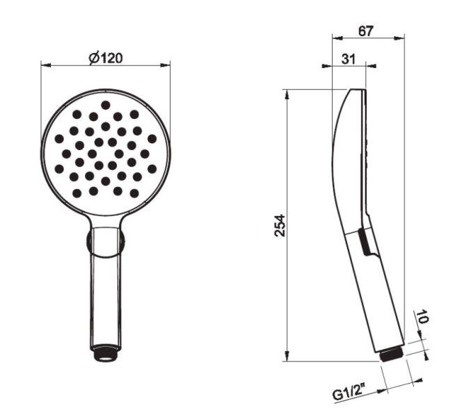 • Размер ручного душа, см: