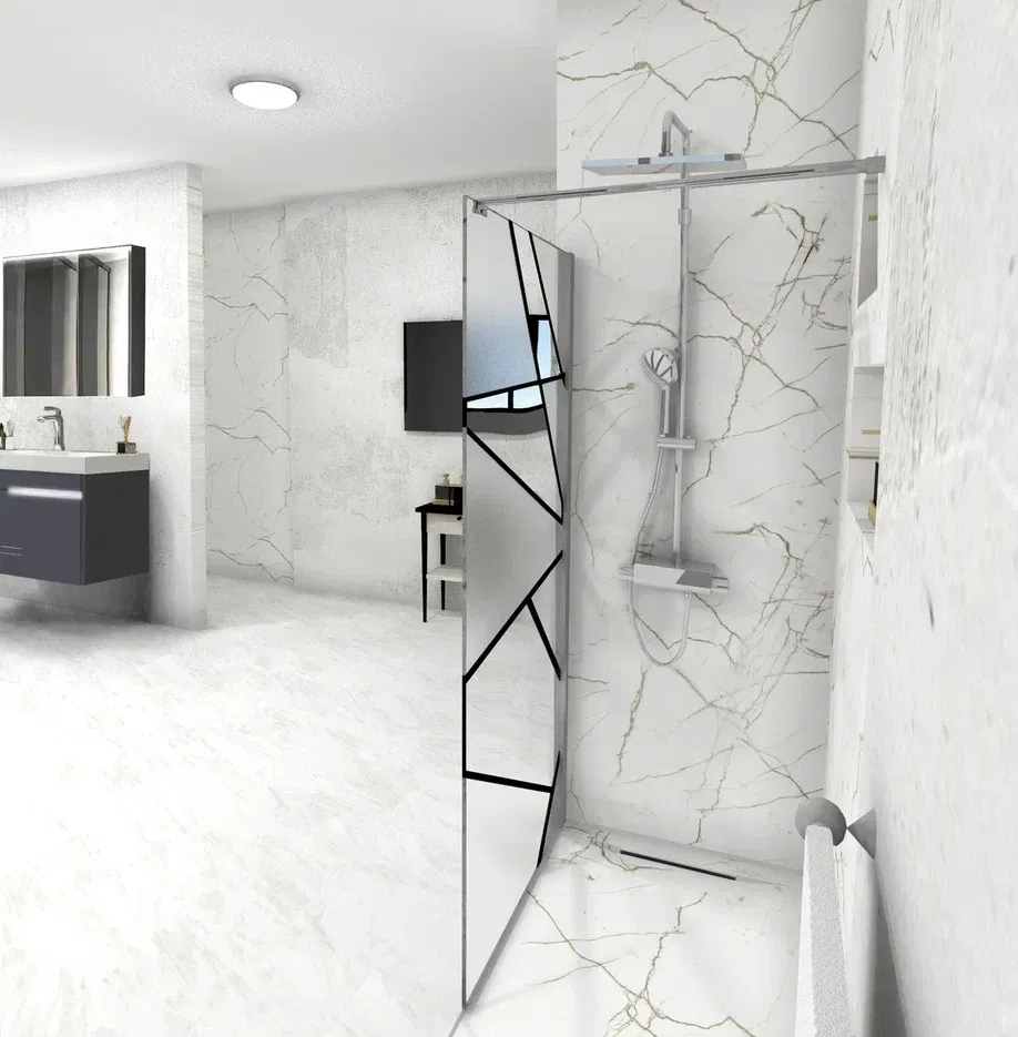 • закаленное стекло (8 мм), узор матовый с прозрачным