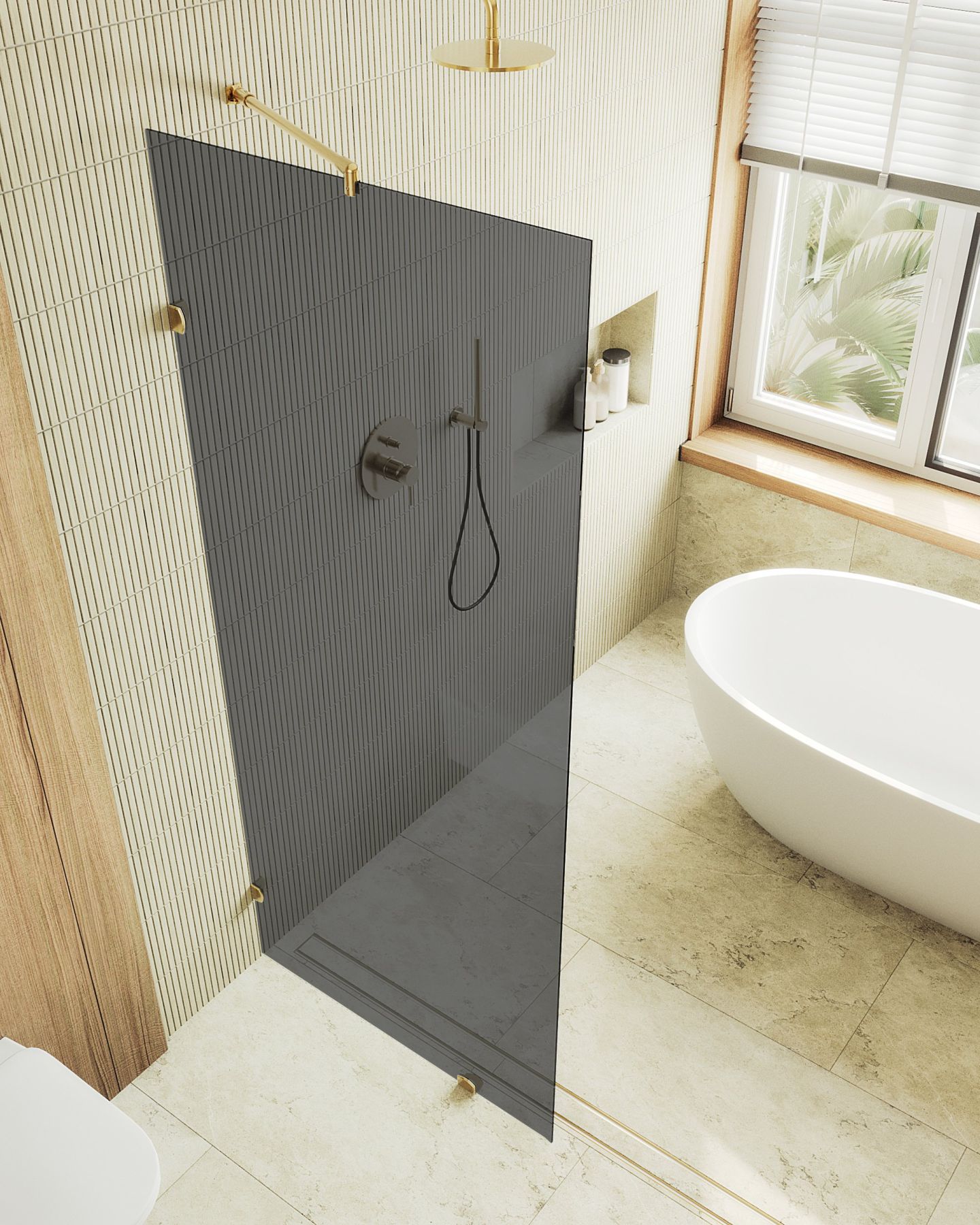 Стеклянная душевая перегородка "Коннектор стена-стекло" - это стильное и современное решение для организации пространства в вашей ванной комнате. Эта перегородка изготовлена из высококачественного закаленного стекла толщиной 8 мм, что обеспечивает прочность и долговечность конструкции. Одним из главных преимуществ этой перегородки являются коннекторы, которые надежно фиксируются и обеспечивают безопасность при принятии душа. Закаленное стекло , цвет графит , толщина 8 мм , 1950*790-1 шт.