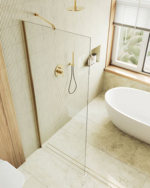 Душевая перегородка MaybahGlass MGD-695-3ш 79см золото купить