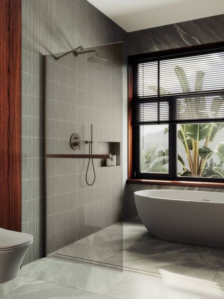 Душевая перегородка в профиле с полотенцесушителем представляет собой компактное и функциональное решение для разделения пространства в ванной комнате . Она изготовлена из закаленного стекла,анодированного алюминиевого профиля, что обеспечивает прочность и долговечность конструкции. Закаленное стекло , цвет бронза , толщина 8 мм , 1950*790-1 шт.