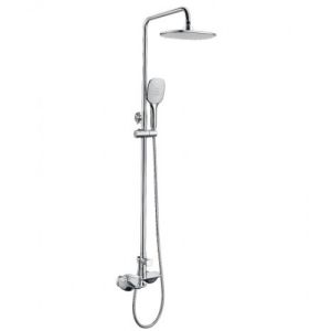 Смеситель для ванны и душа с регулируемой высотой штанги, монолитным изливом и верхней душевой лейкой «Тропический дождь»