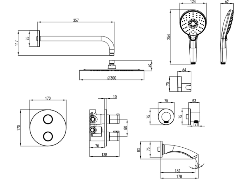 • Душевой шланг 1,5-2 м, растяжной, с функцией вращения лейки без перекручивания