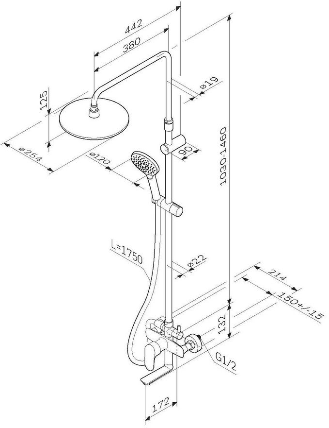 верхний душ 250 мм, ручной душ – 110 мм Подробнее