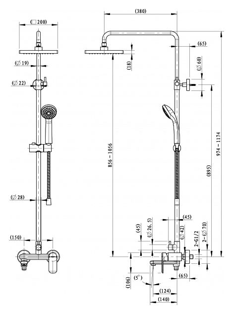 Душевая стойка для ванны Bravat Opal с большим квадратным верхним душем и смесителем. Серия известна не только своим качеством, но и высоким уровнем эргономики.