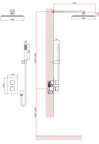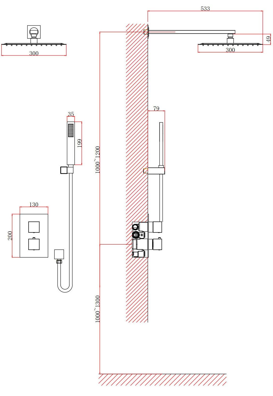 • Размер верхнего душа, см: