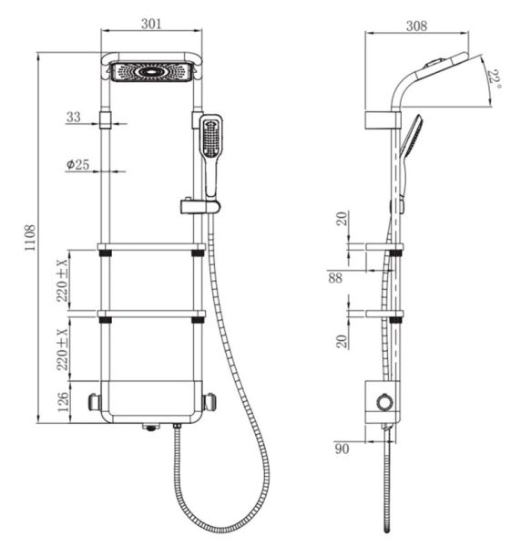 - Размер верхнего душа, см:30