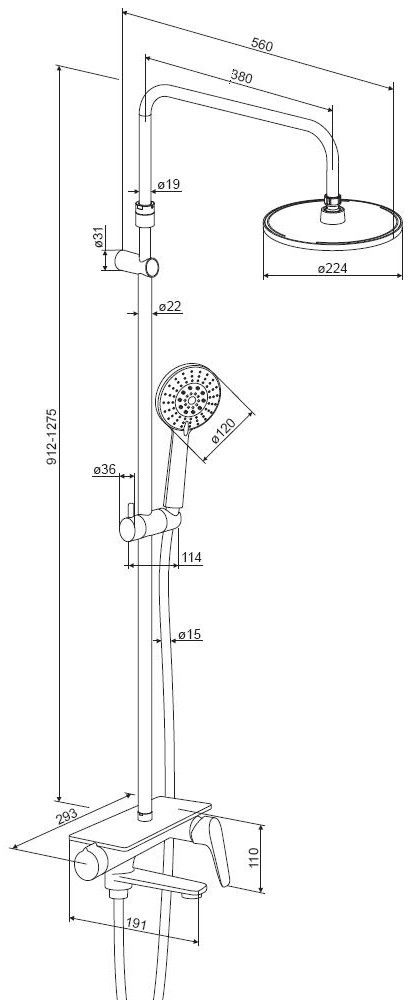 • Размер верхнего душа, см: