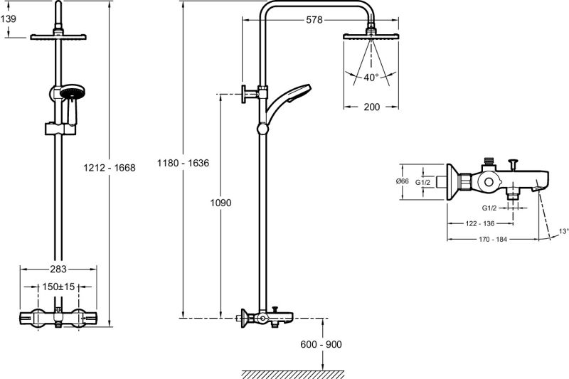 Регулируемая высота колонны.УСТАНОВКА : Крепление к стене