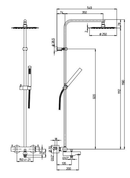 • Размер верхнего душа, см: