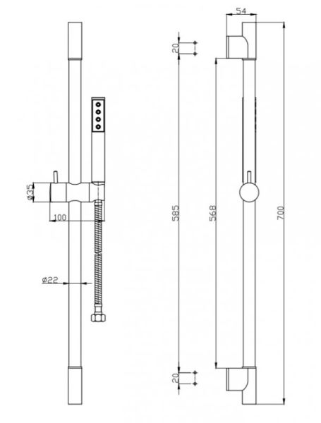 Оснащение: регулируемый держатель ручного душа,ручной душ с душевым шлангом