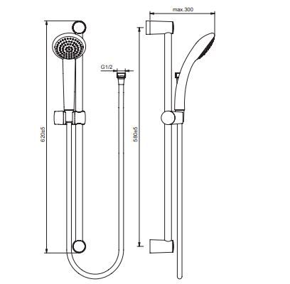 FRESH S Душевой гарнитур (1-функциональная лейка 80 мм, штанга 600 мм, шланг Ultraflex 1750 мм).