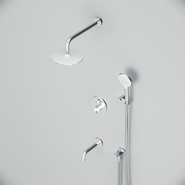 Набор встроенного оборудования X-Joy - идеальное решение для вашей ванной комнаты. Встроенный механизм освобождает ванную комнату от лишних деталей  превращая пространство в идеальное место для себя. Набор включает в себя: верхний тропический душ 22 см, ручной душ, держатель ручного душа и смеситель.