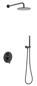 Душевой комплект BERGES VENTAS 2R BLACK - встраиваемый душевой комплект обладает двухрежимной системой и состоит из верхней лейки - «тропического ливня», ручного душа и смесителя.Лейка верхнего душа имеет инновационную систему самоочистки в виде гибких силиконовых вставок на форсунках душа, которые защищают изделие от известковых отложений. Изготовлен верхний душ из нержавеющей стали. Ручной душ – из ABS пластика. Оба душа имеют черное матовое покрытие, которое выглядит безупречно на протяжении всего периода эксплуатации.Шланг выполнен из нержавеющей стали (внутри epdm), смеситель с латунным корпусом имеет керамический картридж с пропускной способностью 28 л/мин, все держатели и кронштейны сделаны из латуни и нержавеющей стали.Скрытый монтаж комплекта позволяет создавать красивое и эргономичное внутреннее пространство всего помещения.
