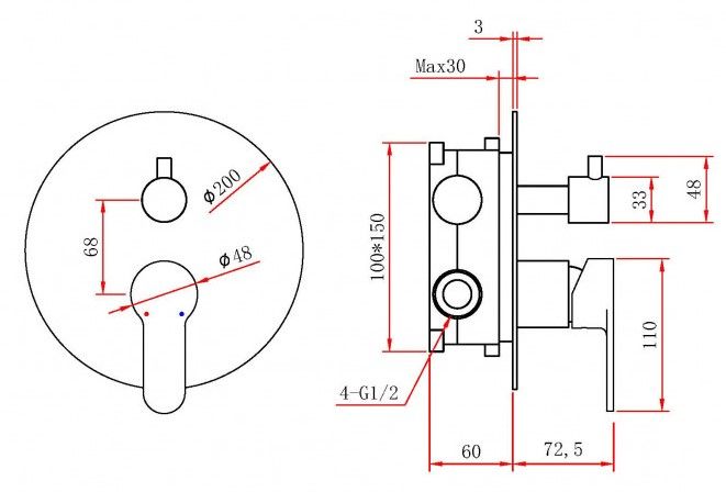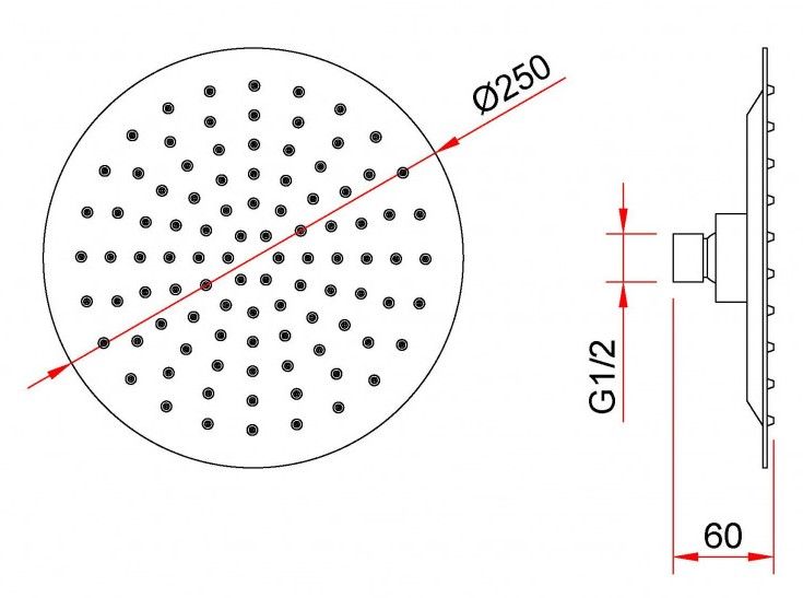 • Размер верхнего душа, см: