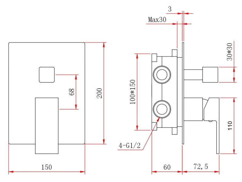 - Размер верхнего душа, см:25