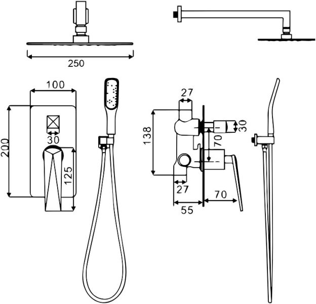 - Размер верхнего душа, см:25