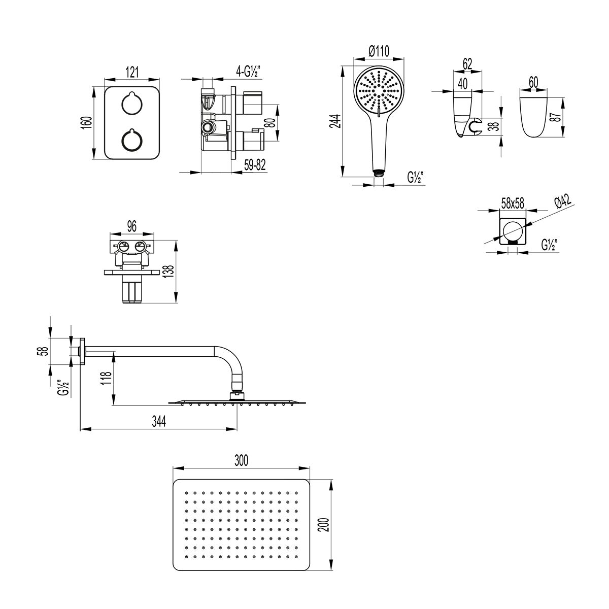 - Размер верхнего душа, см:30