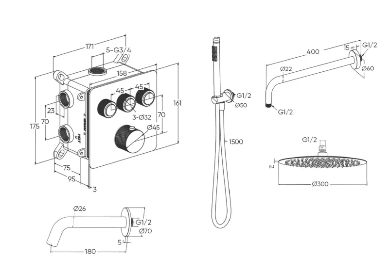 Душевой комплект Milleau Tissage TERMO 3SBIT/801Q-CR хром купить