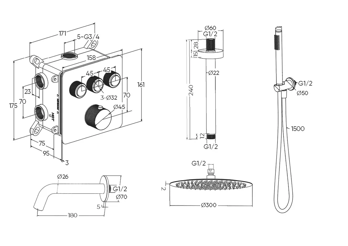 Душевой комплект Milleau Tissage TERMO 3SBIT/802Q-CR хром купить