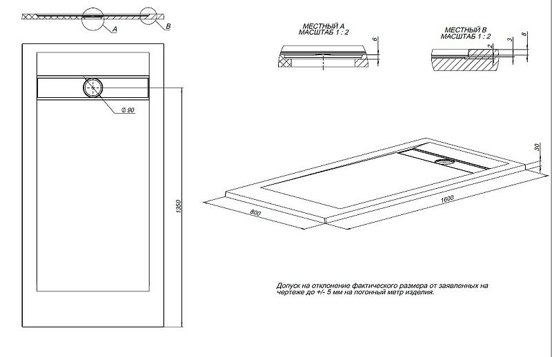 Размеры (ШхВхД): 1600х30х800 мм.