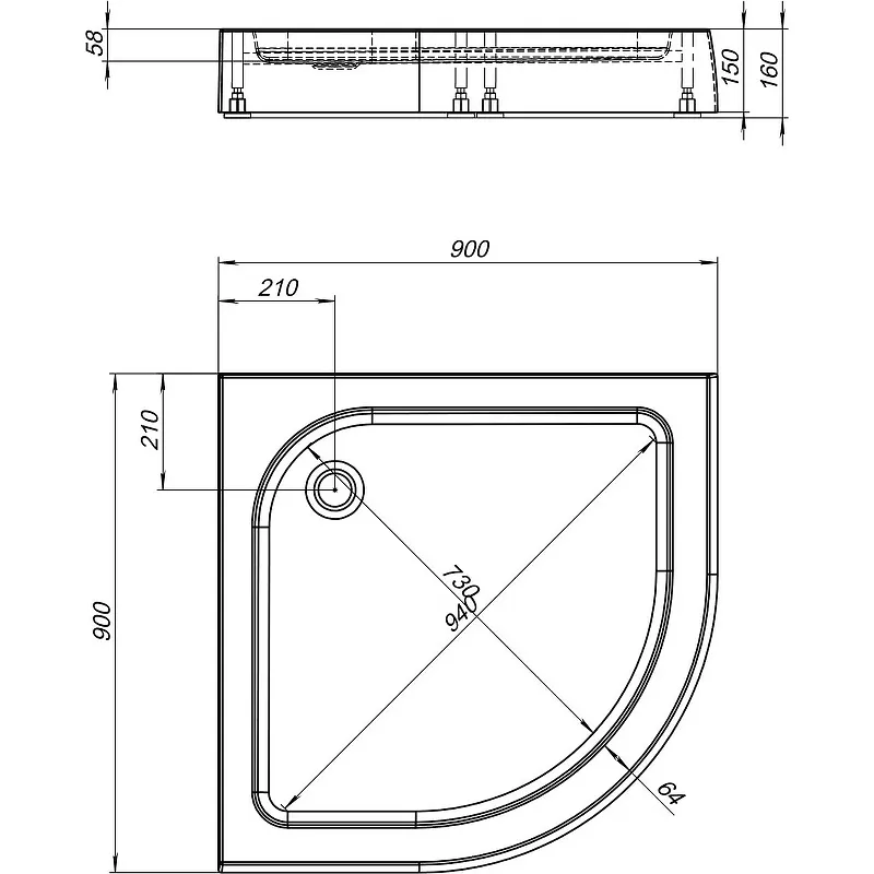 Душевой поддон Aquanet 90х90 293844 от производителя AQUANET. Форма четверть круга увеличивает п... Подробнее