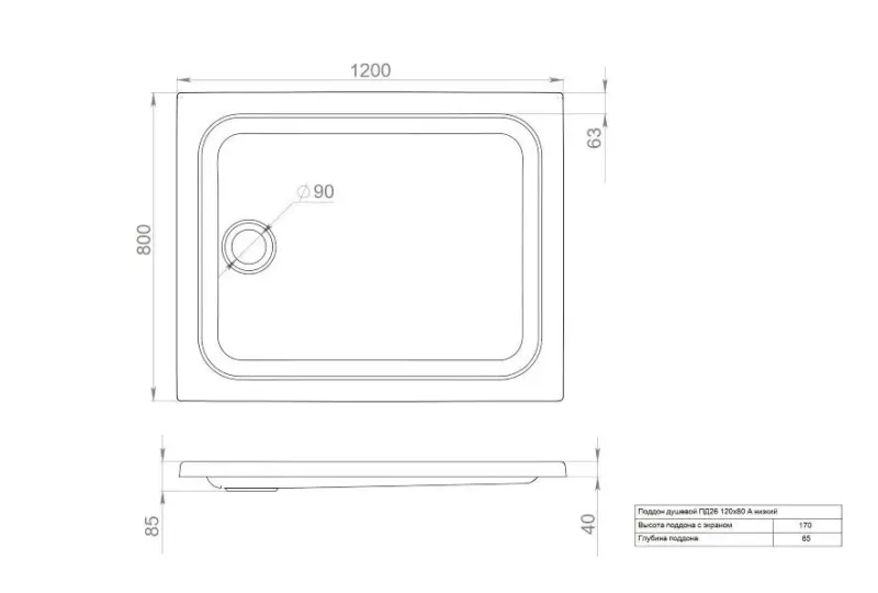 - Высота поддона 170мм